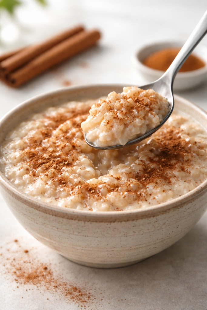 Arroz con leche integral cremoso y fácil, con toque de limón y canela