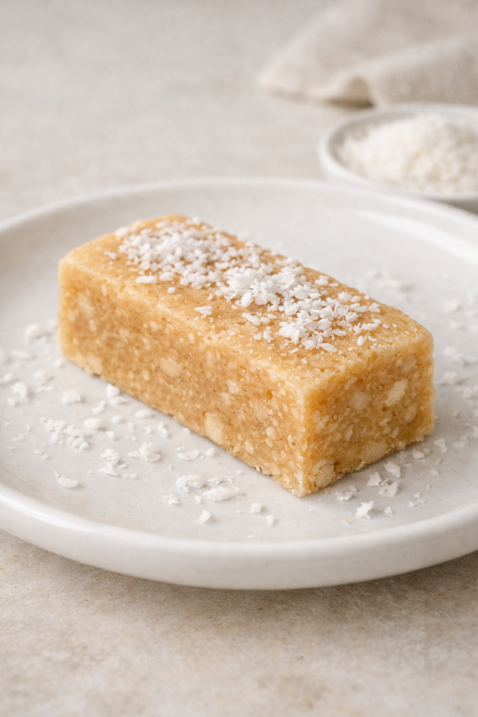 Barritas suaves de anacardo y coco sin azúcar, tiernas, saciantes y perfectas para un snack casero.