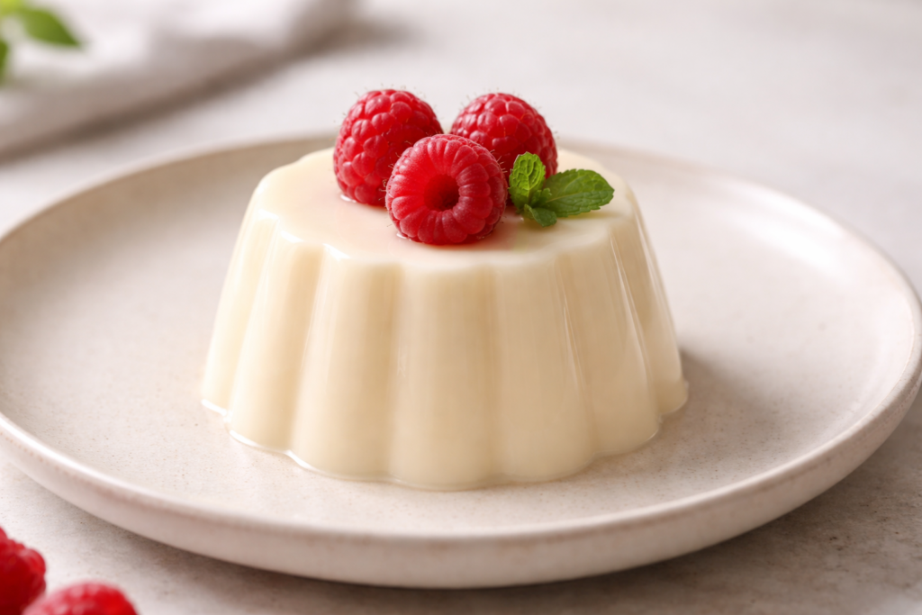 Panna cotta sin azúcar con plátano y vainilla: cremosa, fácil y perfecta como postre frío. Lista en 10 min + 4 h de nevera.