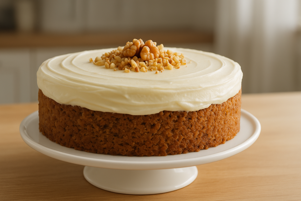Bizcocho de zanahoria sin lactosa, tipo carrot cake saludable, sin azúcar refinado y con opción sin gluten. Una receta jugosa y aromática, ideal para desayunos y meriendas, con frosting cremoso elaborado con queso crema y yogur sin lactosa.