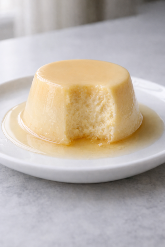 Flan de huevo sin azúcar, cremoso y suave, hecho al baño María con un toque de vainilla.