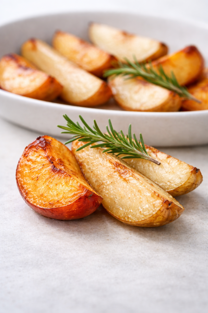 Esta fruta asada con romero es un postre súper sencillo pero con toque “gourmet”: el romero le da un aroma brutal y la fruta queda tierna y caramelizada de forma natural.