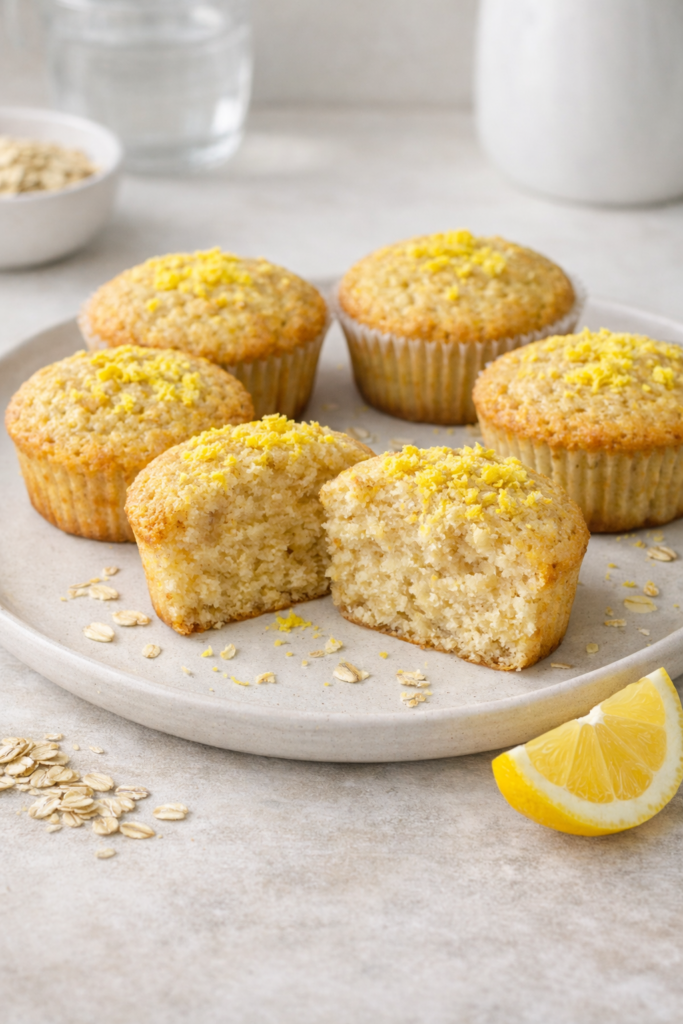 Magdalenas de avena y limón sin azúcar y sin gluten: esponjosas, suaves y muy fáciles de hacer