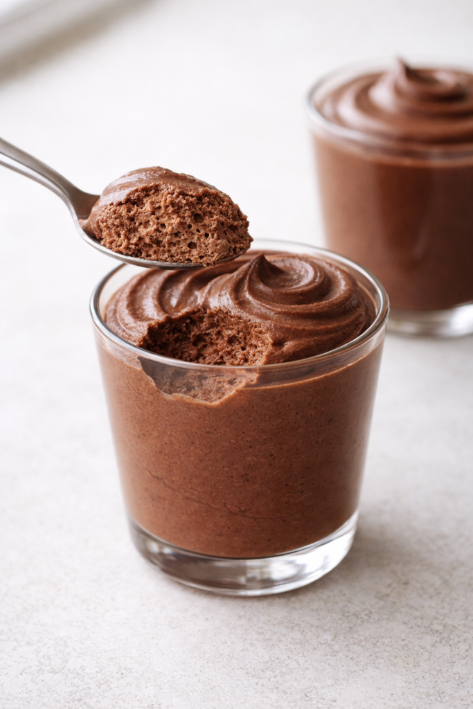 La mousse de chocolate sin azúcar sale súper cremosa, con sabor intenso a chocolate 85% y una textura ligera que se deshace.
