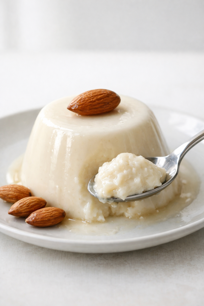 Esta panna cotta de leche de almendras es suave, fresquita y muy fácil de preparar. Se hace con pocos ingredientes, queda con una textura cremosa y es ideal para servir como postre cuando quieres algo ligero pero resultón.