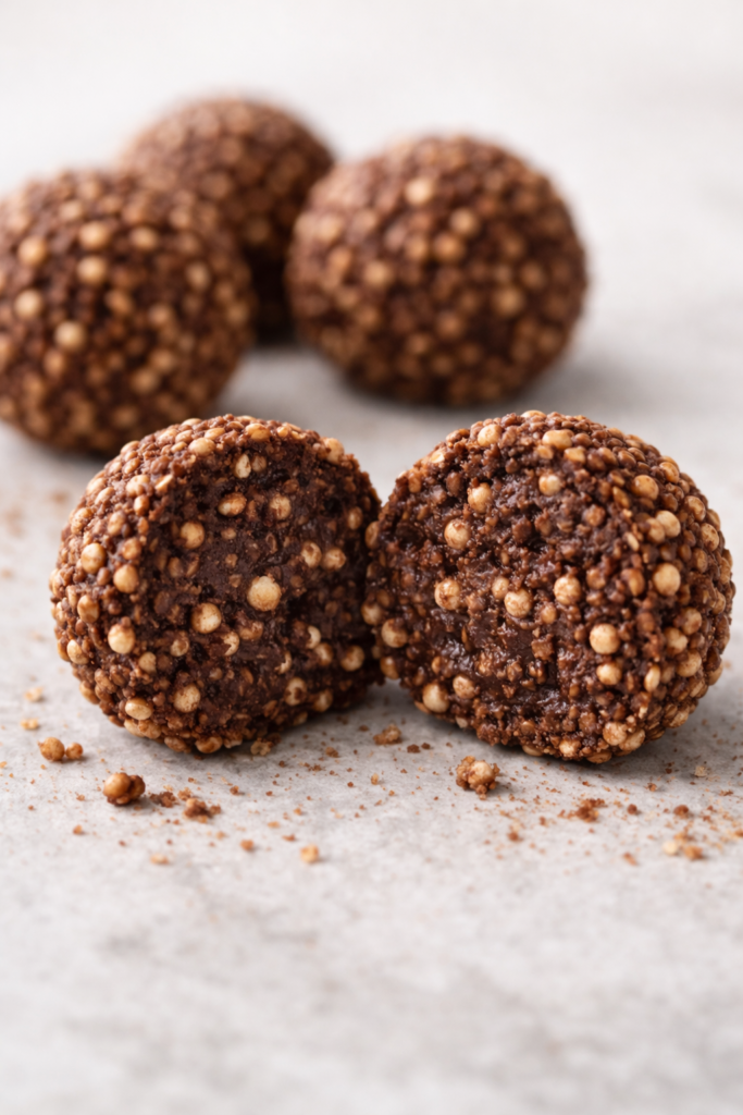 Trufas de cacao y quinoa inflada: crujientes, fáciles y sin horno